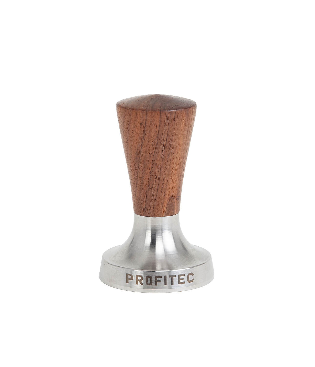 De Profitec tamper met zijn hoogwaardige walnotenhouten handvat zorgt voor een optimale aandrukkracht en is daarom een onmisbaar barista accessoire.
