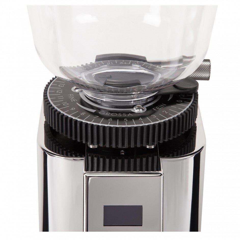 Door eenvoudig aan de hoogwaardige roestvrijstalen instelknop te draaien kun je de maalfijnheid tot in de perfectie afstellen. De maalinstellingsring geeft een duidelijk afleesbare maalinstelling.