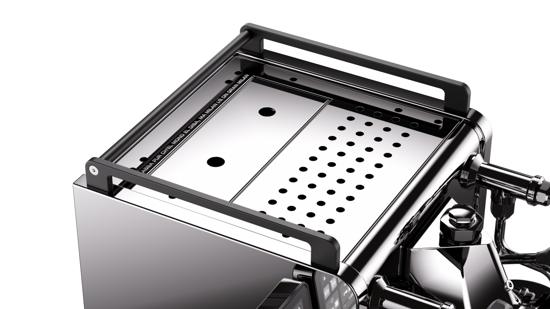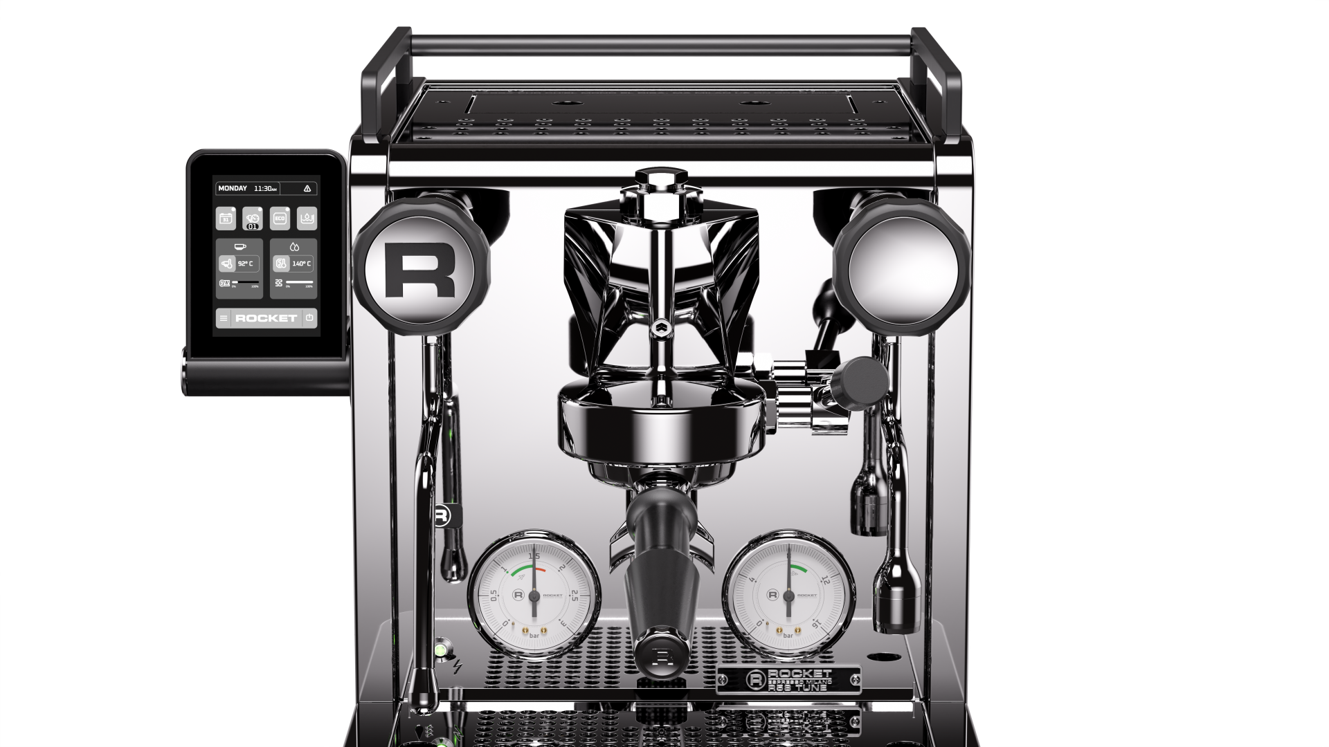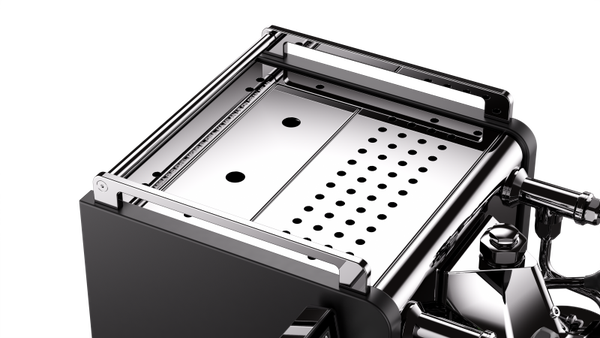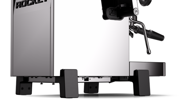 De gegoten metalen voeten en vernieuwde frontbox geven de machine een krachtige, moderne uitstraling. De herkenbare Rocket-stijl blijft behouden: elegant, robuust en tijdloos Italiaans.